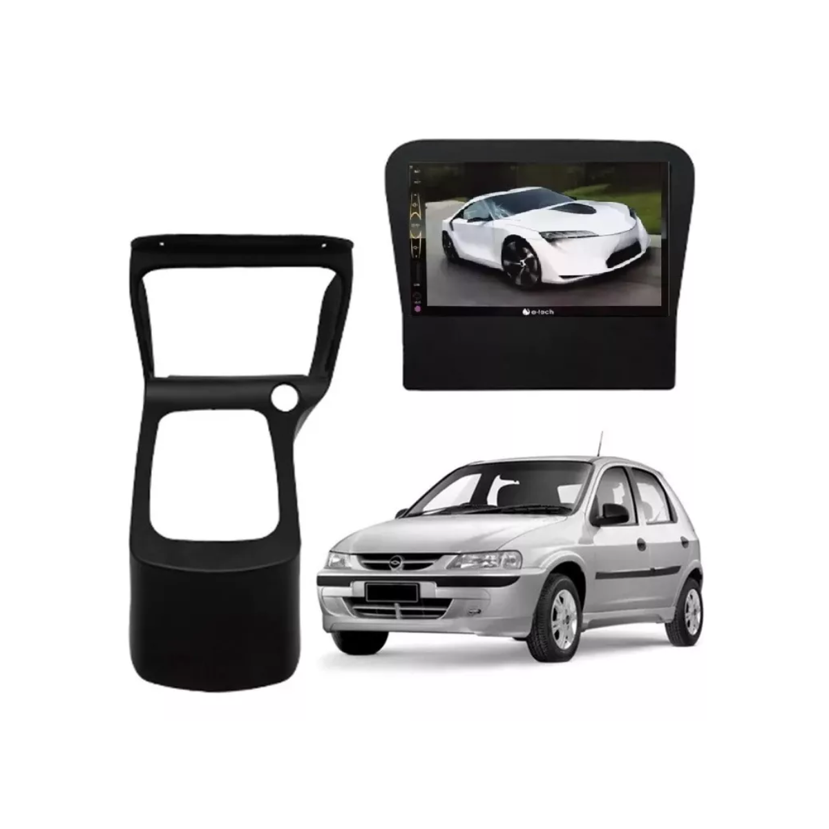 Kit central multimídia específica para o CELTA G1 2000 a 2005 COM CONSOLE PRETO Moldura Fiamon + Aparelho MP5 + câmera de ré borboleta 2 em 1.